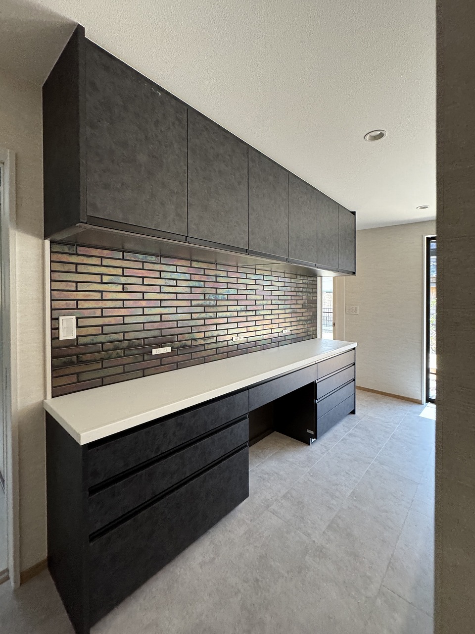 奥様: 私は、家づくり中ずっと楽しかったですね。「丹羽工務店の方たちなら大丈夫」という気持ちがあったからだと思います。唯一心配だったのは色選びでしたが、最初に玄関ドアとタイルと屋根瓦を決めたら、あとは丹羽さんのほうで好みを把握してクロスなど提案してくださいました。「ここから選ぶと良い感じになりますよ」と選択肢をくださったり、なかなか決まらないときには「大丈夫です、かっこよくしますから」と言ってくださって心強かったです。